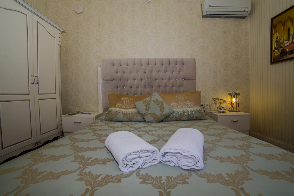 Provides to guests comfort inside of 16-20 square meter.It has airconditioning,dial telephone, minibar, safe box, hair dryer, bathrobe, heating, Ortopedic bed, minibar, safe box, hair dryer, bathrobe, fire dedector, wake up service, pillow menü, satellite TV, free wireless internet service,featured designed furnishing, ceilings with traditional ornaments.